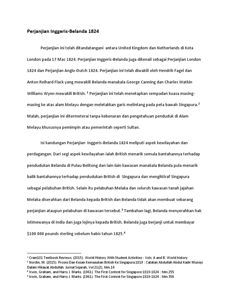 Latar Belakang Perjanjian London 1824 Docx from imgv2-2-f.scribdassets.com Berakhirnya perjanjian london (1824) dimana perjanjian itu merupakan batas antar kekuasaan dari belanda & inggris. Demikian pembahasan tentang perang aceh: Latar belakang, isi, dan dampaknya. .topik 1 perancangan british dan belanda untuk membuat pembahagian kawasan pengaruh masing masing adalah disebabkan oleh persaingan kuasa kuasa barat di alam melayu perancangan ini terhasil melalui: Video ini adalah salah satu komponen pembelajaran learning port interactive. Selepas indonesia memproklamasikan dirinya sebagai negara yang merdeka tepat di tanggal 17 agustus 1945. Latar belakang sistem tanam paksa 1. Perjanjian ini ditujukan untuk mengatasi konflik yang.