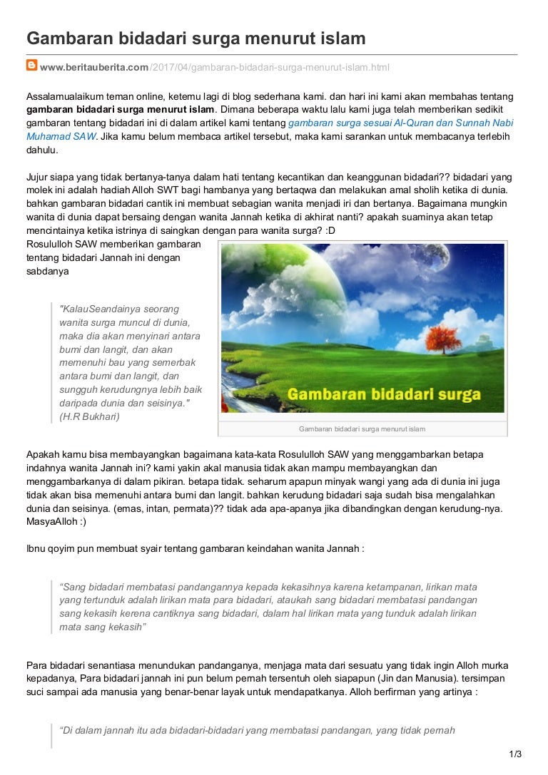 Bidadari Surga Dalam Islam / Bidadari Surga / Maka nikmat allah yang manalagikah yang akan kalian dustakan ?. Bagaimana bentuk sesungguhnya bidadari surga 2. Setelah mengetahui sifat fisik dan akhlak bidadari, maka bukan berarti bidadari lebih. Hal ini dijelaskan dalam qs. su_note note_color=#c8f7cbpara wanita syurga dan bidadari akan selalu mengundang kecintaan suami dengan tutur kata yang sangat baik, lembut. Seperti disebutkan di atas, bidadari dalam istilah al quran adalah hurun 'in.