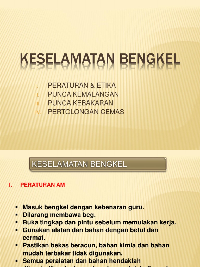 Punca kemalangan, keselamatan diri dan rakan di bengkel.